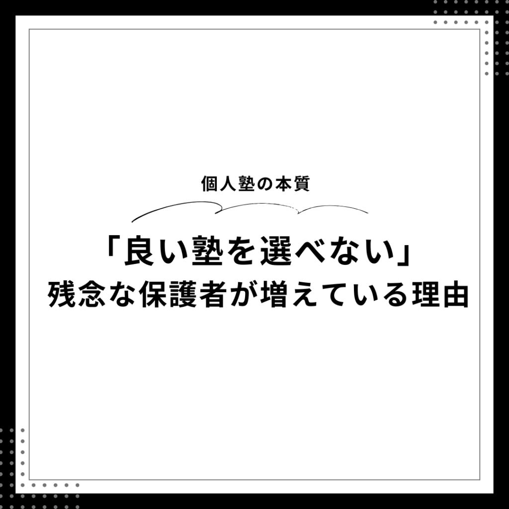 【個人塾の本質】良い塾を選べない保護者が増えている理由